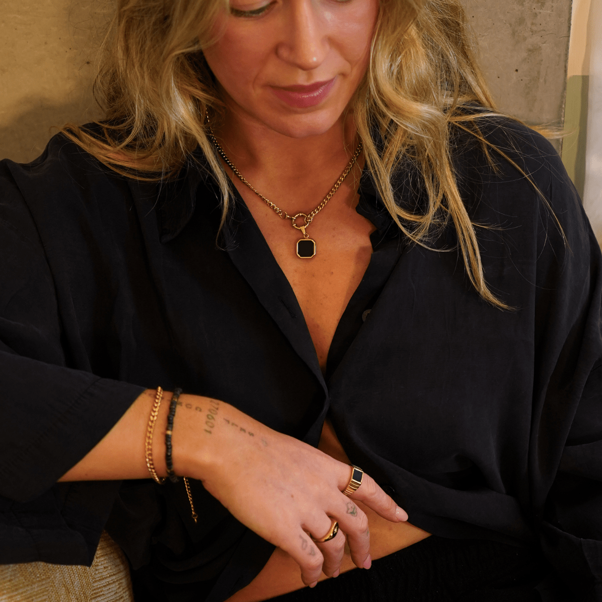 Add a modern edge to your collection with our Classic Black Square Charm. Sleek and versatile, this charm pairs effortlessly with various chains, bringing a bold yet minimalist touch to your look. Perfect for stacking or wearing solo, this charm is all about refined simplicity.