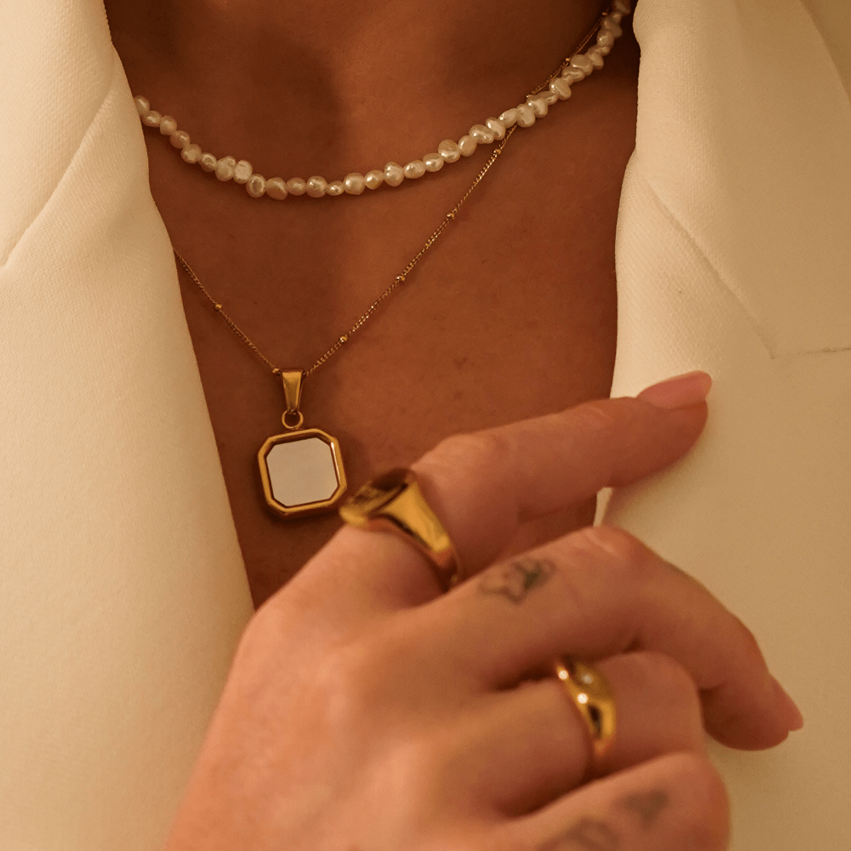 This stunning charm features a classic square design with a lustrous pearl colour that catches the light beautifully. Perfect for any of our chains, it can be worn alone for a minimalist vibe or paired with our other charms for a layered effect. Ideal for special occasions or everyday wear.