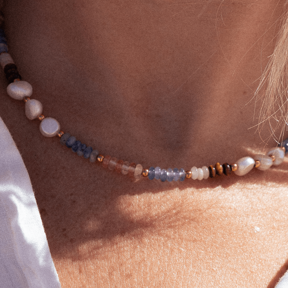Like a secret spot only you know about, the Hidden Cove Necklace captures the quiet beauty of ocean blues and sun-warmed sands. Featuring natural stones and freshwater pearls, it’s a subtle nod to shoreline treasures - soft, earthy and effortlessly wearable. Waterproof and made to last, this one’s for golden hour dips, slow beach walks and everyday moments that feel like summer.